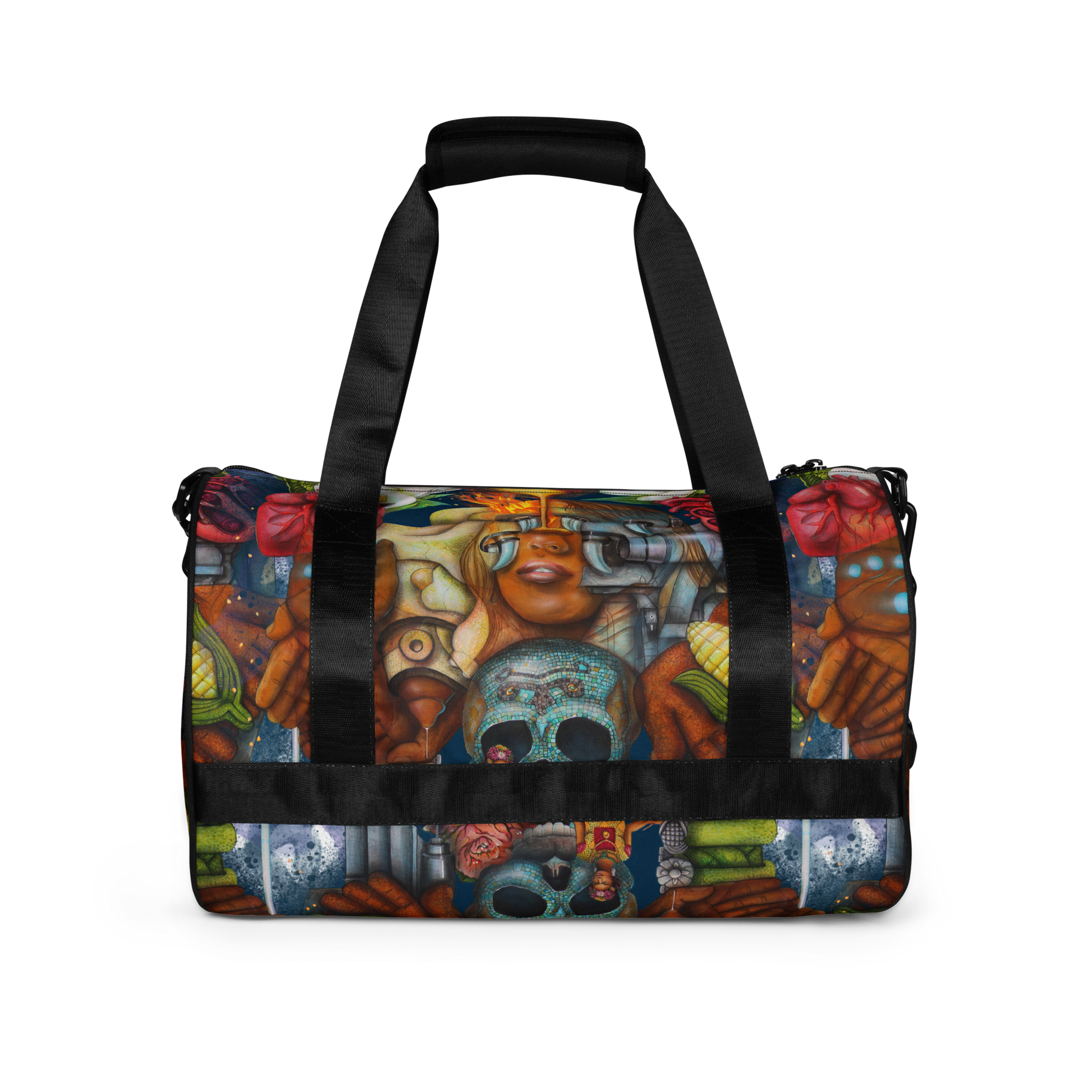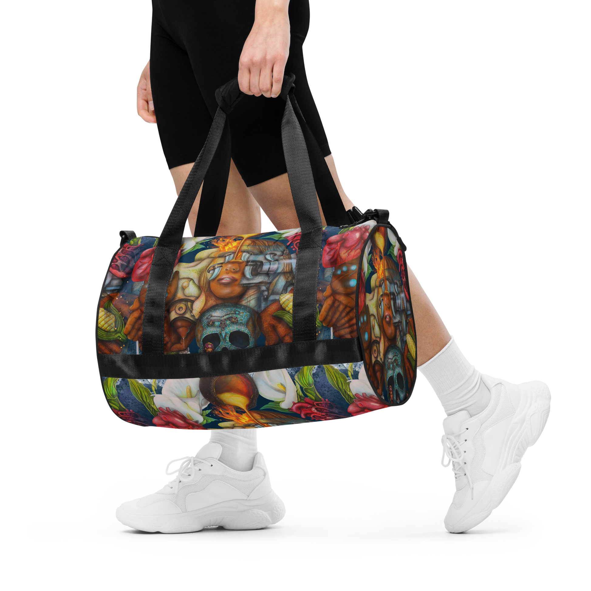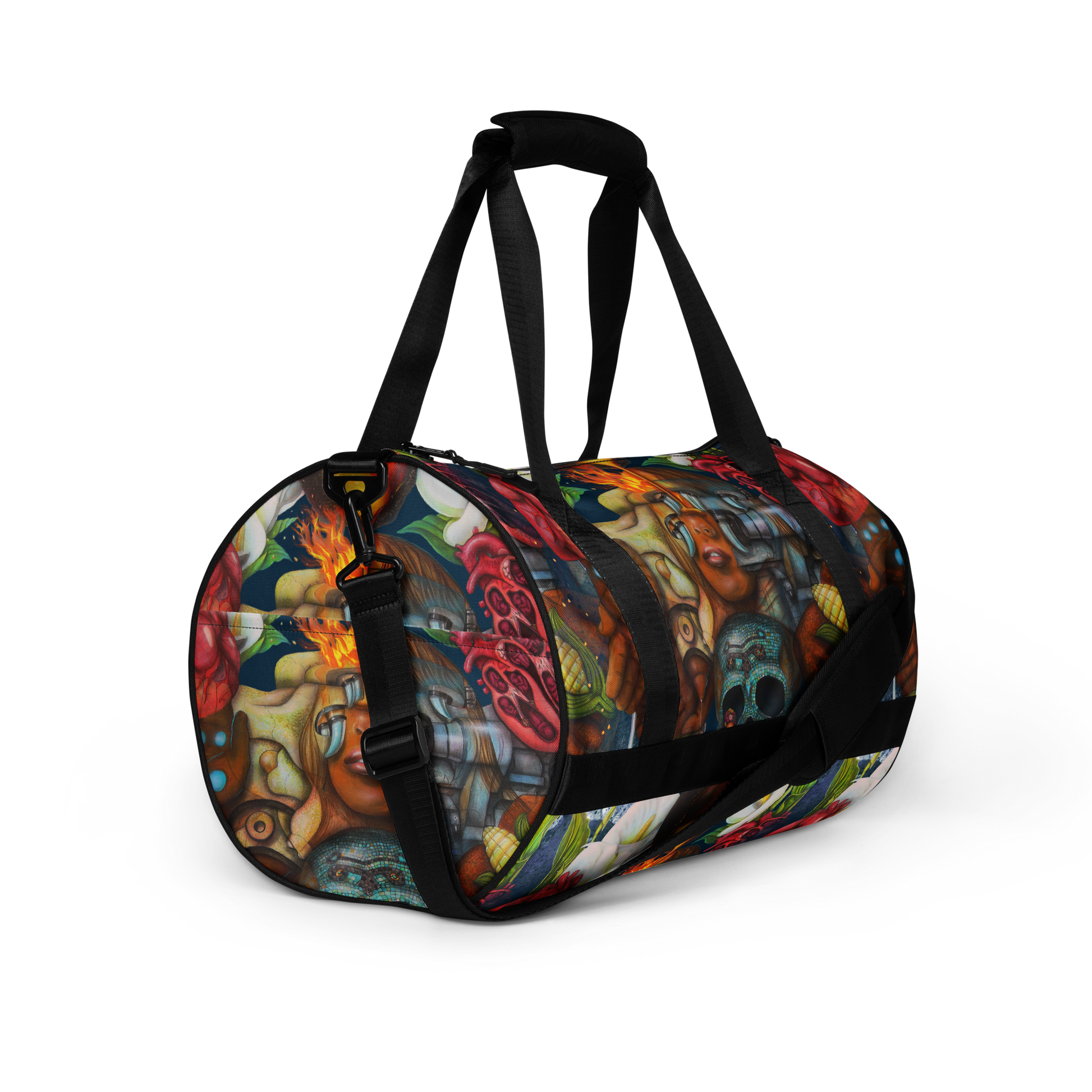 Ready to get your fitness on? Add some punch to pumping iron with this all-over print gym bag. Made from 100% polyester and sturdy, water-resistant fabric, this bag is fun meets function. And it’s got pockets!