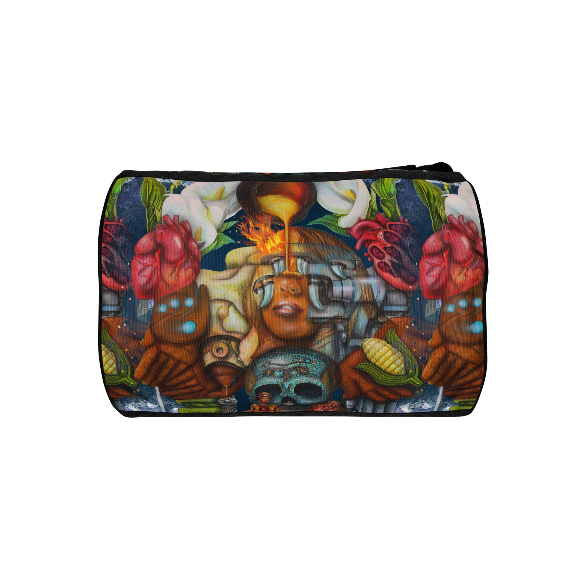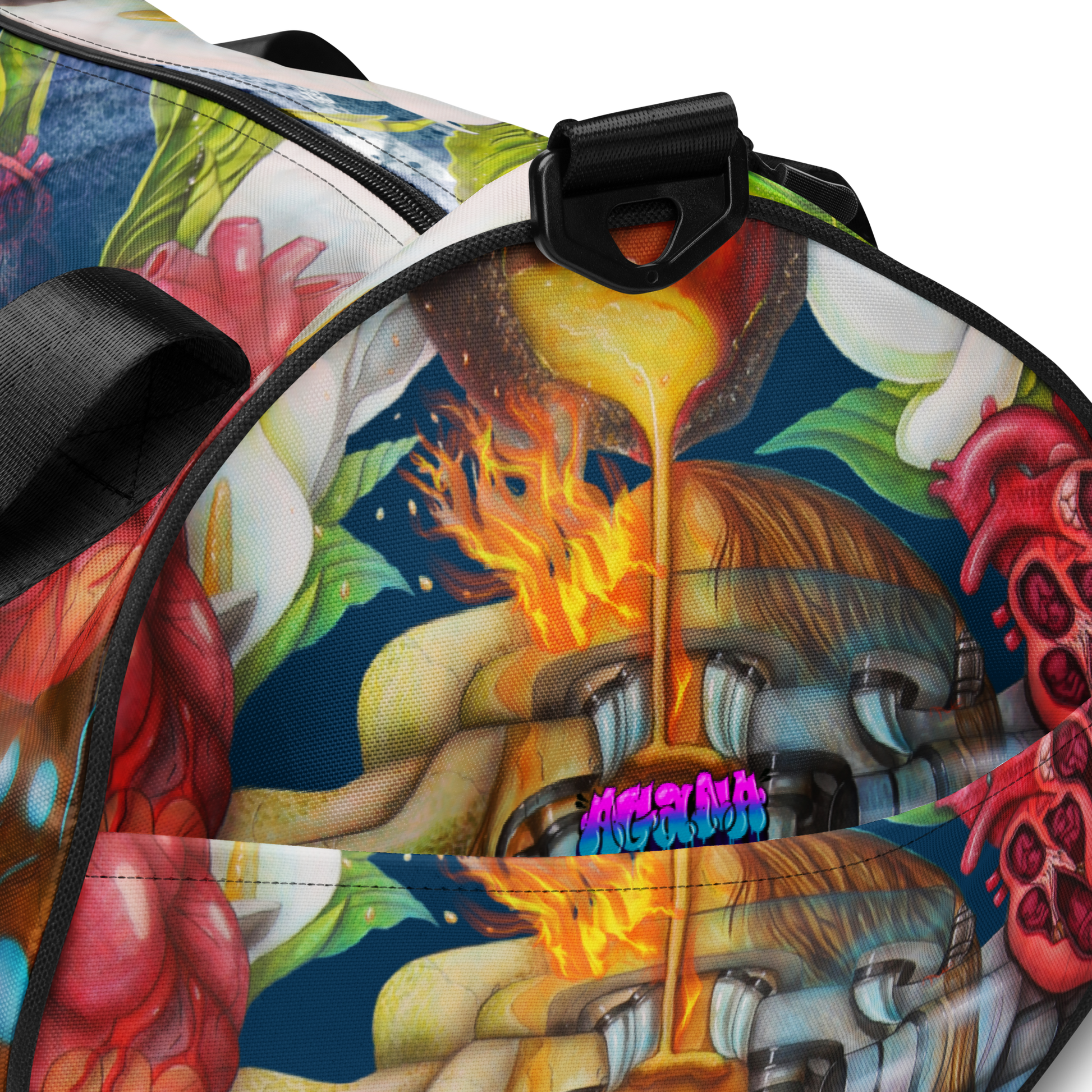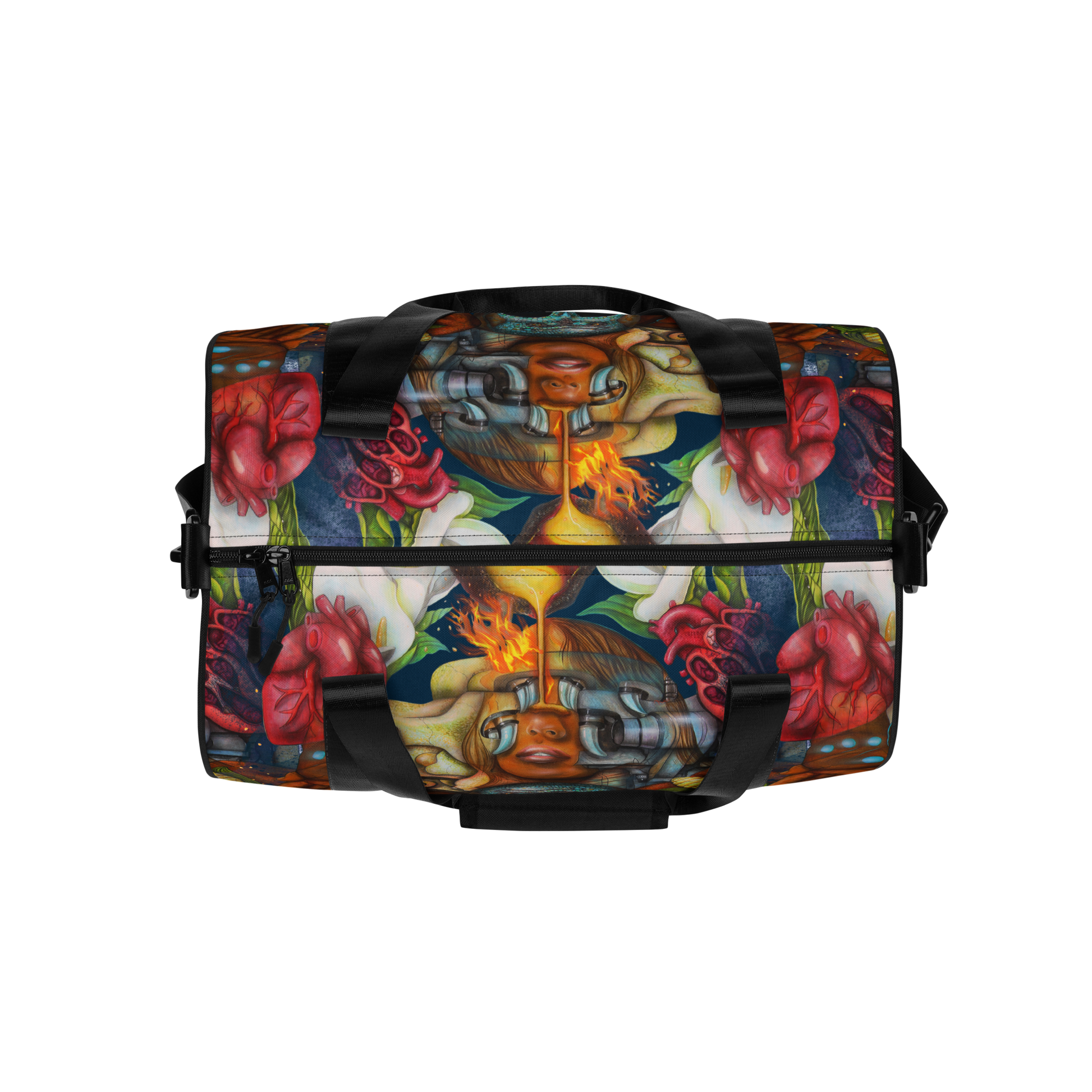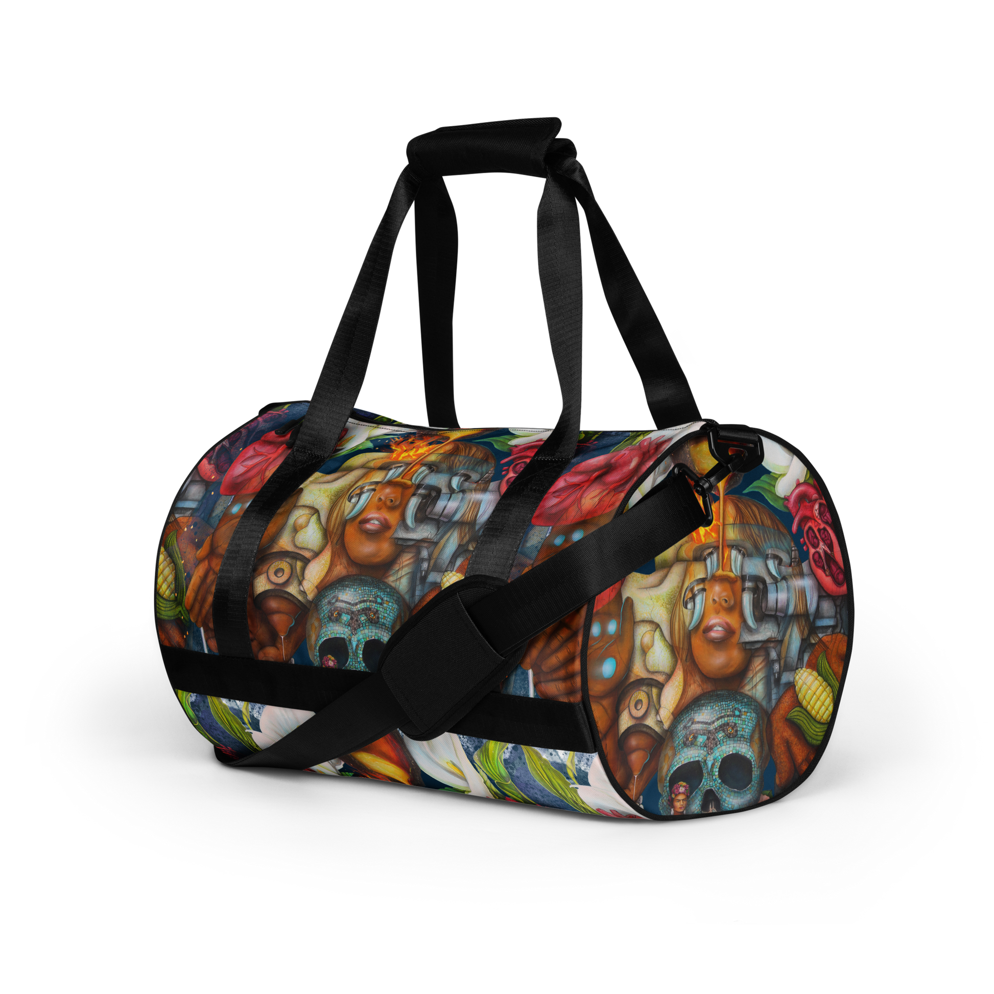 Ready to get your fitness on? Add some punch to pumping iron with this all-over print gym bag. Made from 100% polyester and sturdy, water-resistant fabric, this bag is fun meets function. And it’s got pockets!